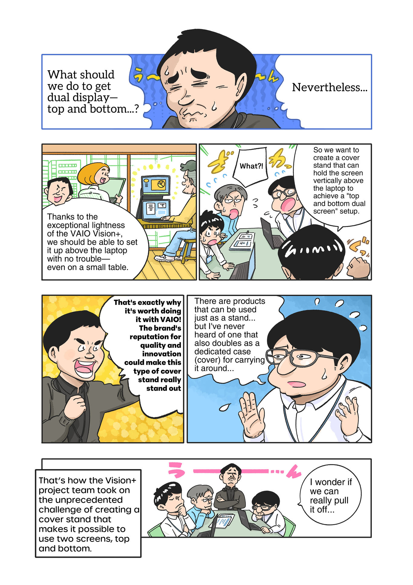 Every VAIO product carries the dedication and challenges of the people behind its creation. Some of these behind-the-scenes stories are captured in the comic series VAIO Monogatari.